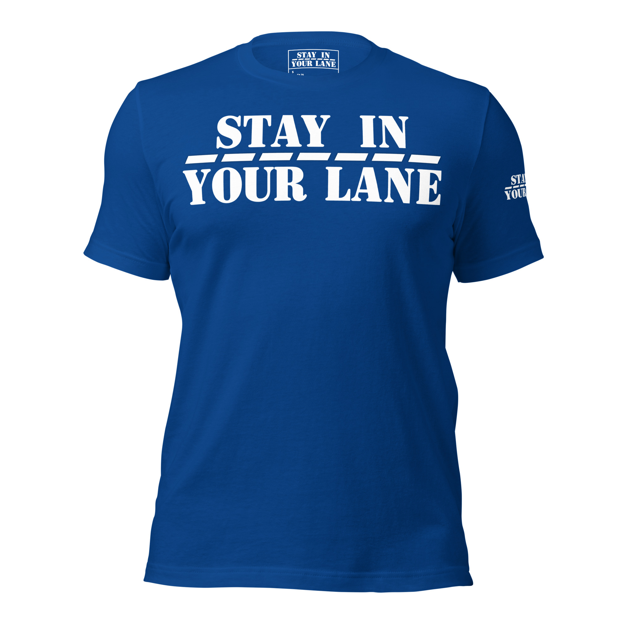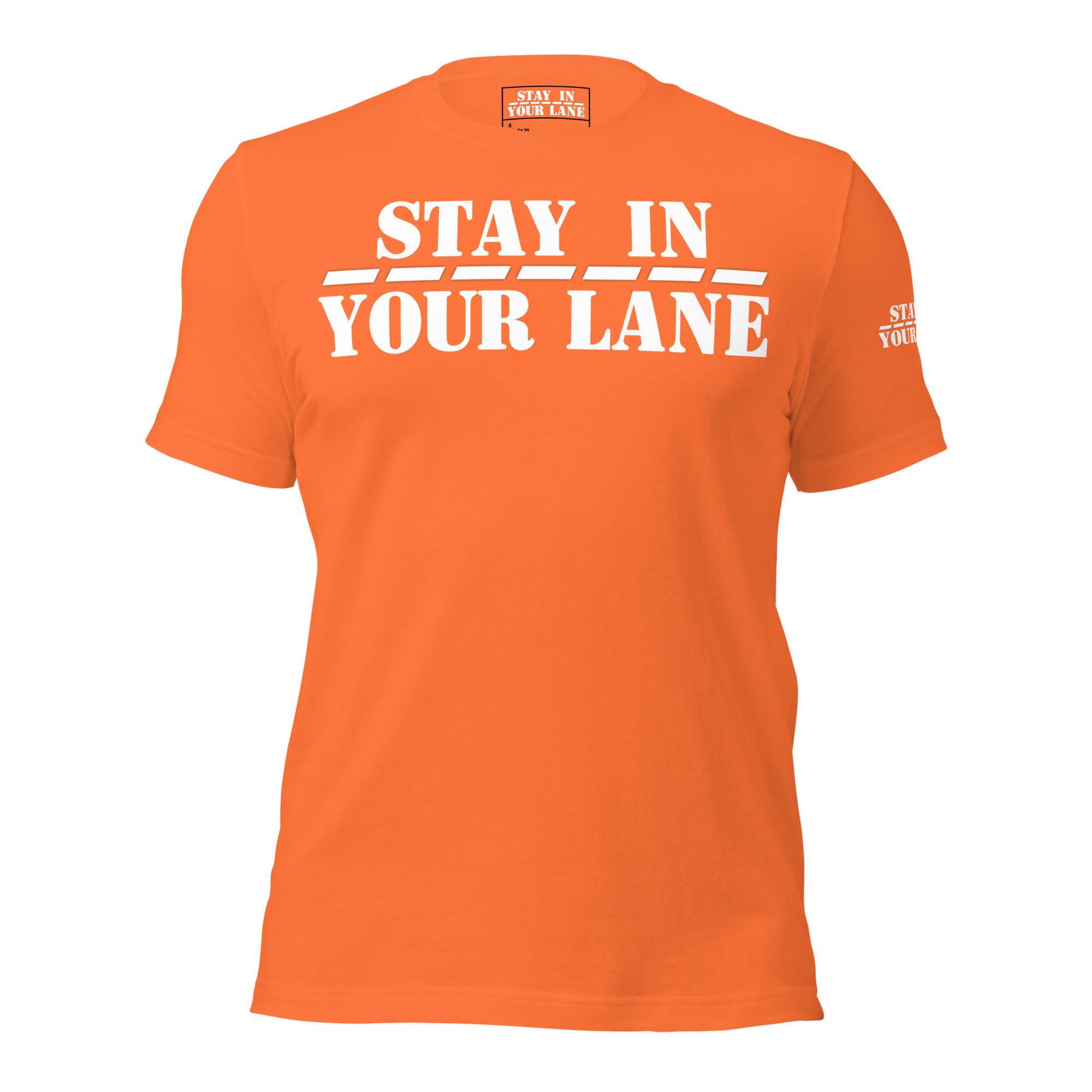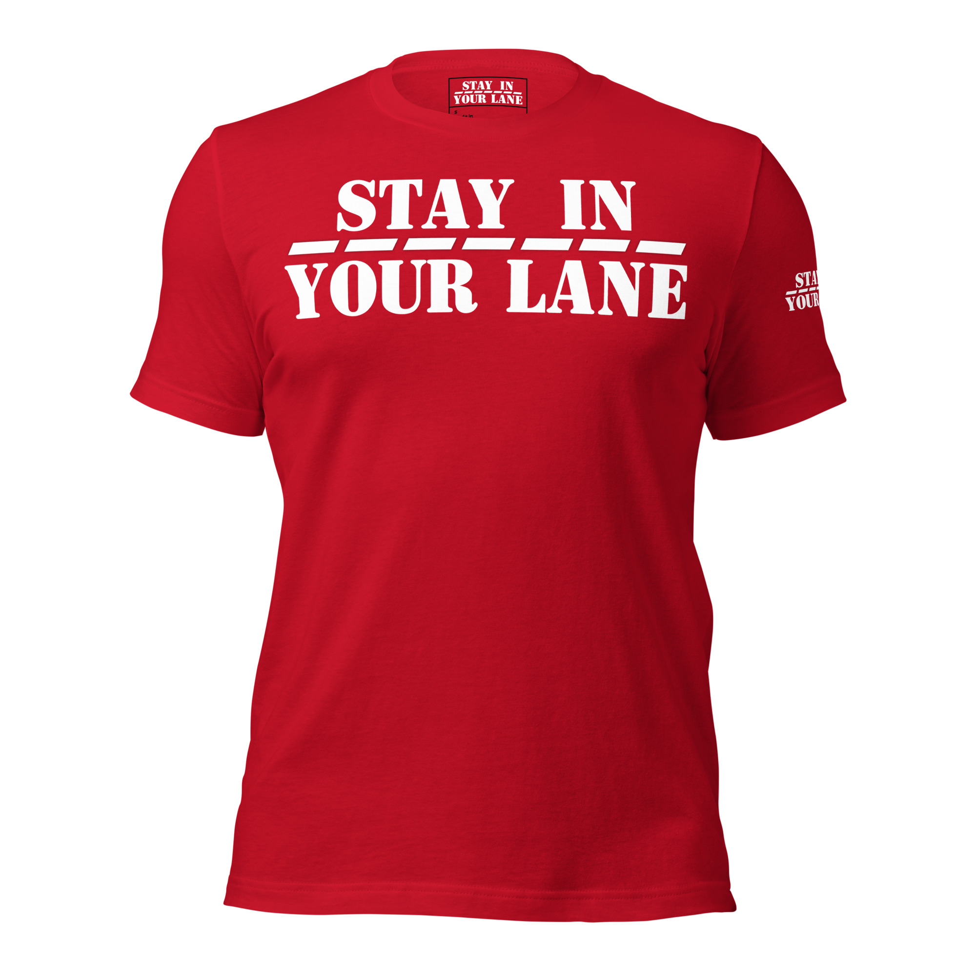 Stand out from the crowd with the Stay In Your Lane t-shirt – the perfect way to make a statement with minimalist style.