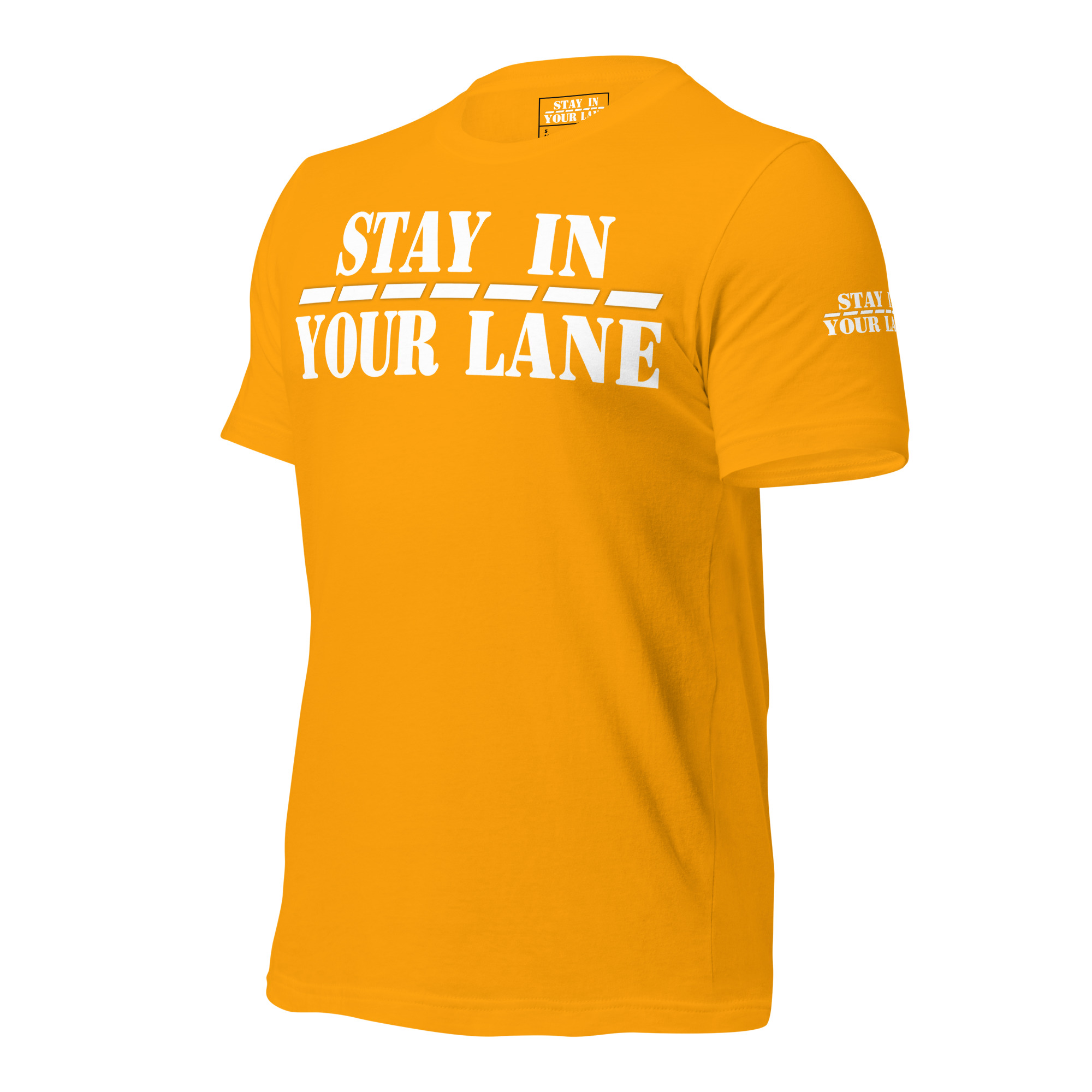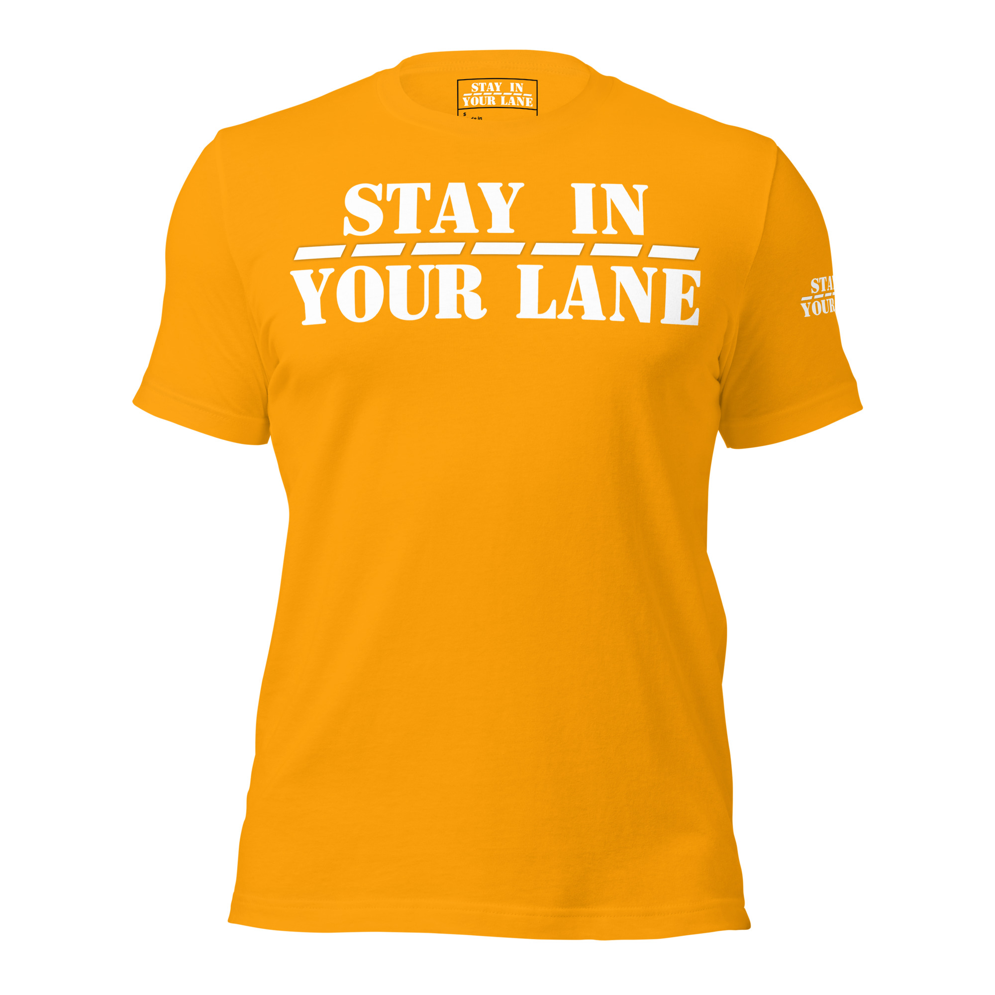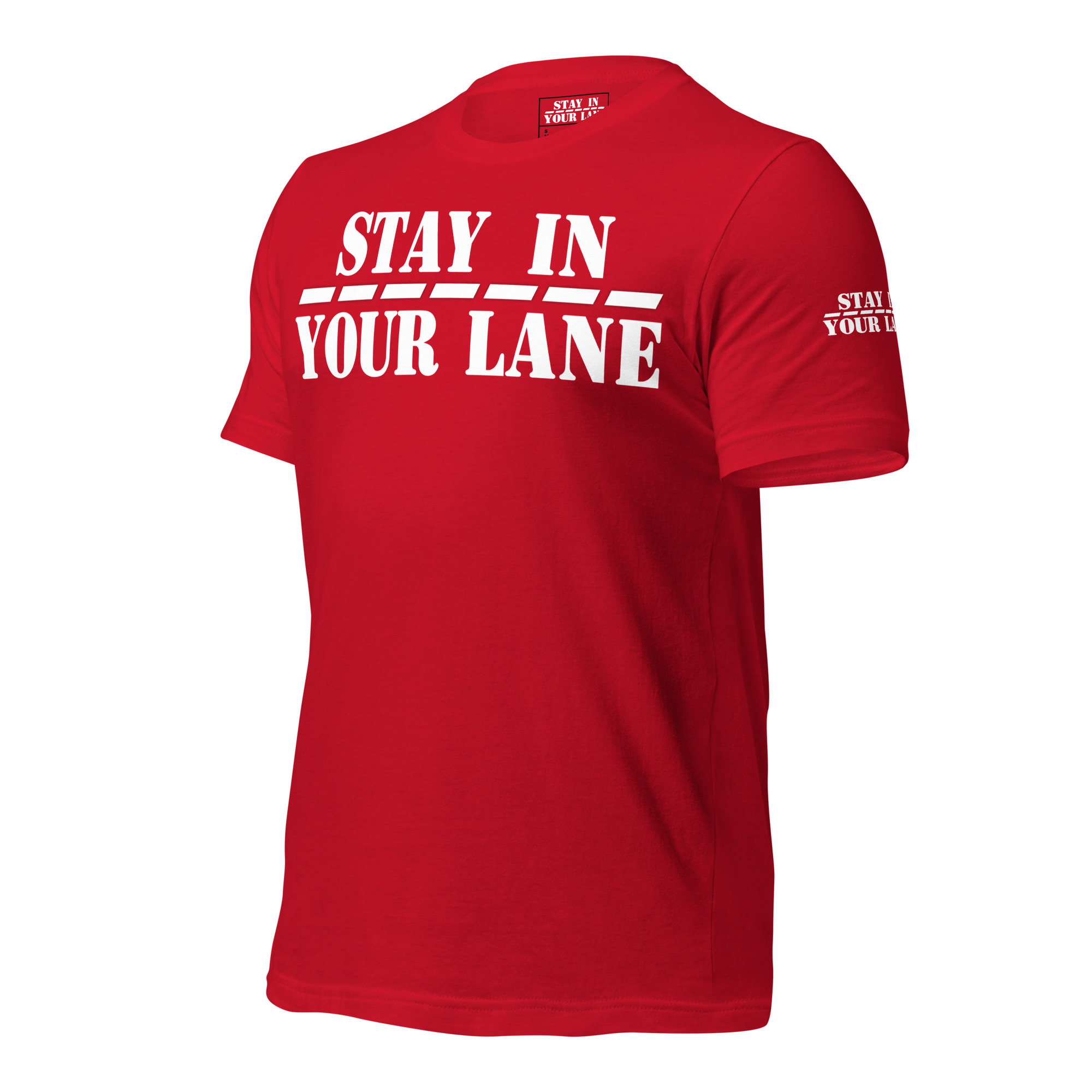 Stand out from the crowd with the Stay In Your Lane t-shirt – the perfect way to make a statement with minimalist style.